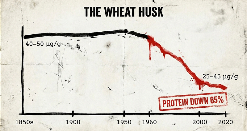 A 2017 global review confirmed that vegetables, fruits, and grains worldwide had lost 5% to 40% of their minerals, vitamins, and protein over the same period. Copper in vegetables? Down a staggering 80%. That’s not a warning sign. That’s a five-alarm fire. And then there’s wheat — the backbone of global diets.